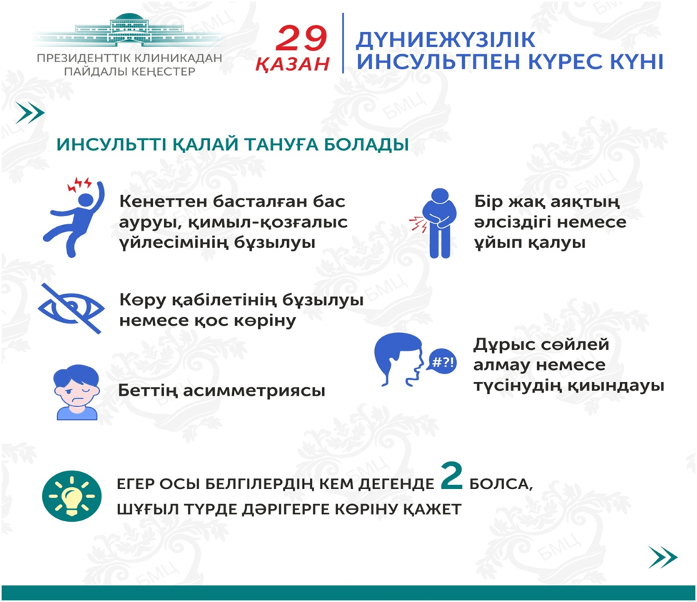 Инсульттің алғашқы белгілерінде дереу жедел жәрдем шақырыңыз!