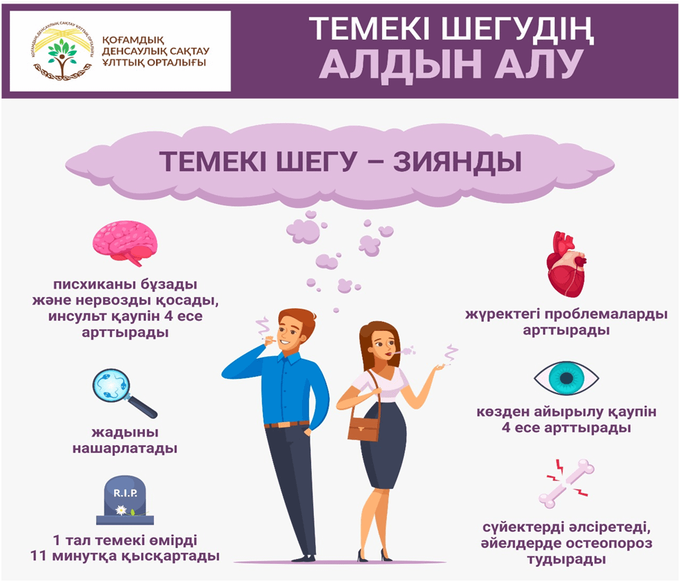 Темекі шегуден , ішімдіктен, есірткі және уытты заттардан бас тарту. Бұл зиянды әдеттер организмге әсер етіп, денсаулыққа зиян келтіреді.